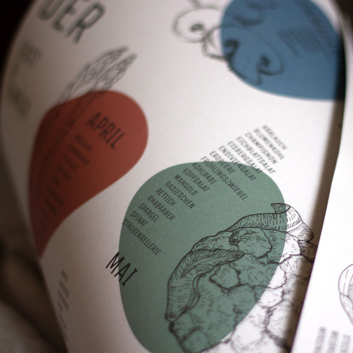 // Übersichtliche Gestaltung: Nach Monaten sortiert, bietet der Saisonkalender einen schnellen Überblick darüber, welches Obst und Gemüse, wann Saison hat und frisch zu kaufen ist.