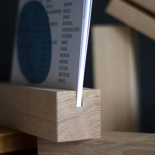// Holz: Regional gewachsenes (Ostwestfalen), unbehandeltes, geschliffenes Eichenholz. Die Färbung kann leicht von den abgebildeten Produkten abweichen.